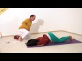 Sukadev leitet die Knie Brust Stirn Stellung an und erklärt etwas dazu.